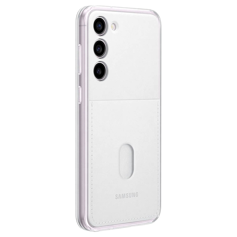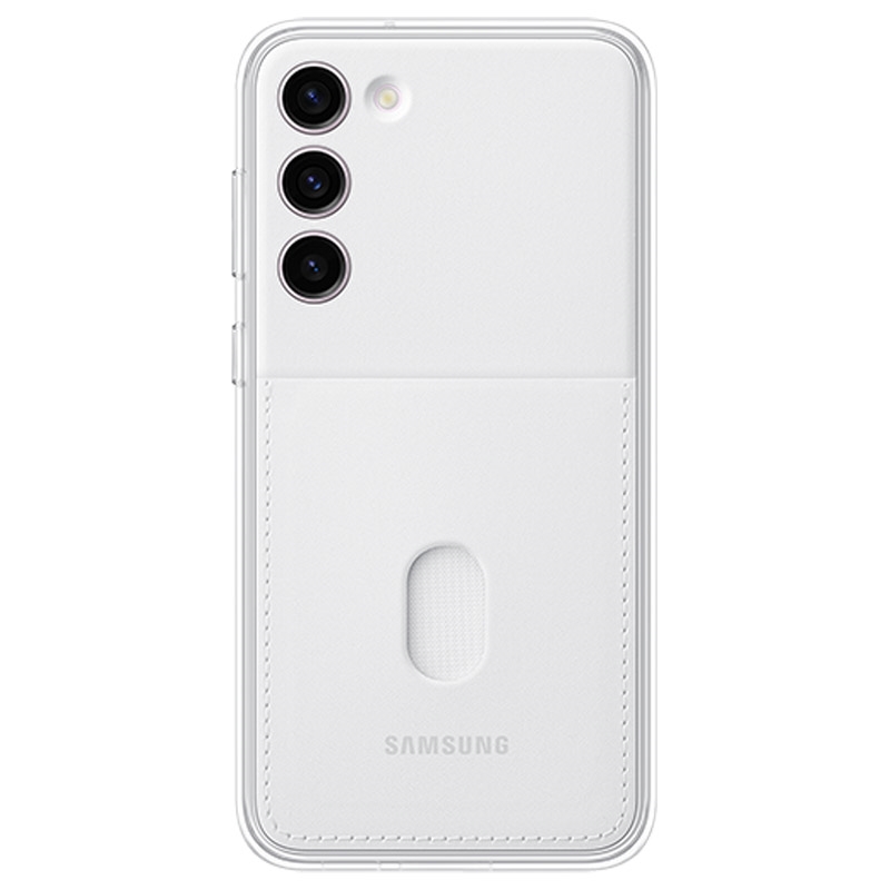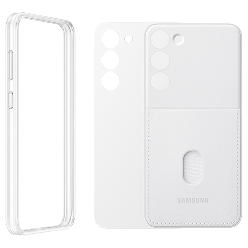Change the look of your Samsung Galaxy S23 Plus 5G in seconds with the original Frame case. This practical cover comes with a light frame and two interchangeable back plates. One back plate is transparent, which lets the design of Samsung Galaxy S23+ 5G come onto its own, while the other one comes with a card slot to store your frequently used card.