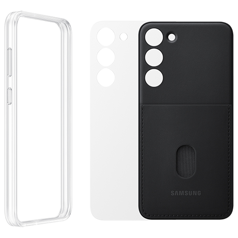 Change the look of your Samsung Galaxy S23 Plus 5G in seconds with the original Frame case. This practical cover comes with a light frame and two interchangeable back plates. One back plate is transparent, which lets the design of Samsung Galaxy S23+ 5G come onto its own, while the other one comes with a card slot to store your frequently used card.