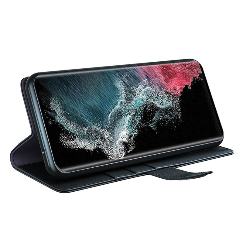 A high-quality sophisticated leather case for your Samsung Galaxy S23 Ultra 5G. Give your phone a premium look, while keeping it safe from scratches and common damage. This multifunctional soft leather wallet case has inner pockets for cards and one larger pocket for cash. On top of that Samsung Galaxy S23 Ultra 5G genuine leather case has hands-free viewing stand and front cutout for talking with case closed.