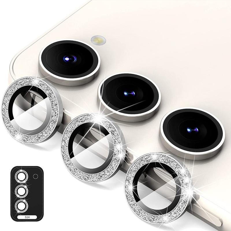 This camera protector is made of premium tempered glass with 9H hardness, placed under the durable aluminum alloy ring decorated with shiny rhinestones. It is precisely crafted to perfectly fit the camera lenses on your Samsung Galaxy S24+, with high transparency so that it won't affect the quality of captured images and videos.