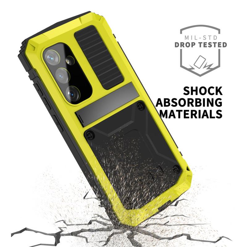 Experience unmatched protection and functionality with the R-Just Case for Samsung Galaxy S25. Built for durability, this hybrid case combines PC, silicone, and metal materials for comprehensive defense against everyday wear and tear. With its integrated kickstand and included tempered glass film, this case offers premium practicality without compromising style. Designed for the modern user, it’s the ideal accessory to protect your device while maintaining sleek aesthetics.
