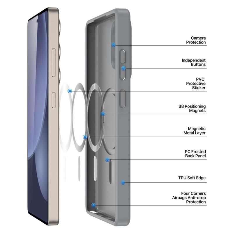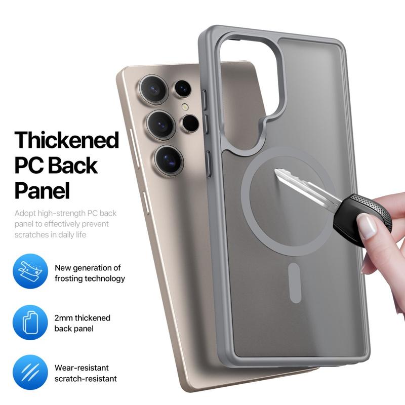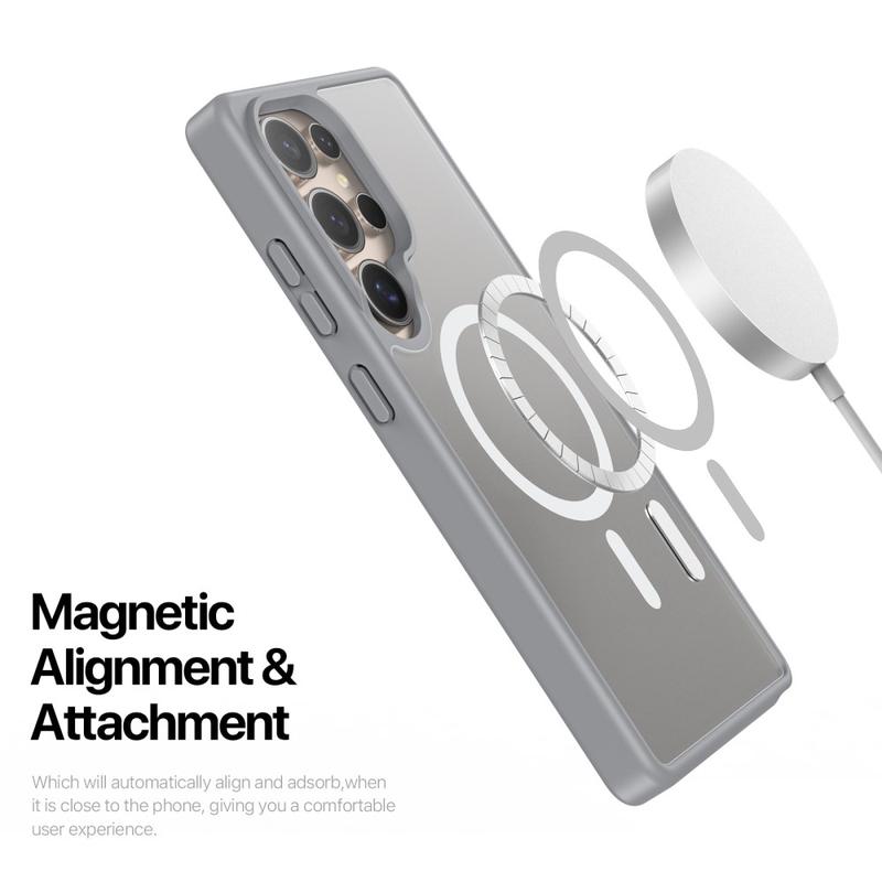 Protect your Samsung Galaxy S25 Ultra with a sleek matte cover that clicks straight onto MagSafe chargers and accessories. The Yind Series pairs a scratch-resistant PC backplate with shock-absorbing TPU edges and a precision-aligned magnetic ring, delivering cable-free power and all-round drop protection without bulky pockets.