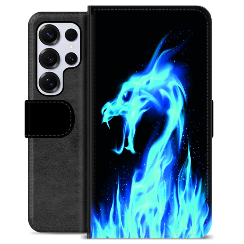 Samsung Galaxy S25 Ultra Premium Wallet Case - Blue Fire Dragon