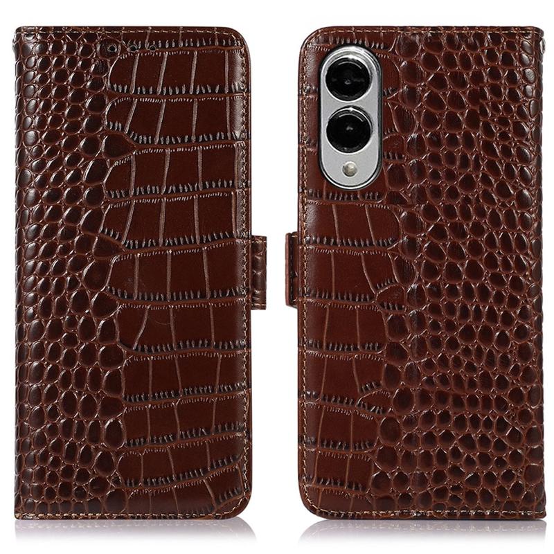 A lightweight and soft wallet case with a unique crocodile texture, the perfect choice to protect your Samsung Galaxy S25 Edge and keep it undamaged. It's made of high-quality genuine leather and inner TPU material, designed with three card slots, an ID slot, and a pocket for cash, ideal for carrying your essentials next to your Samsung Galaxy S25 Edge. Also, RFID technology effectively blocks signals and keep's your data secured.