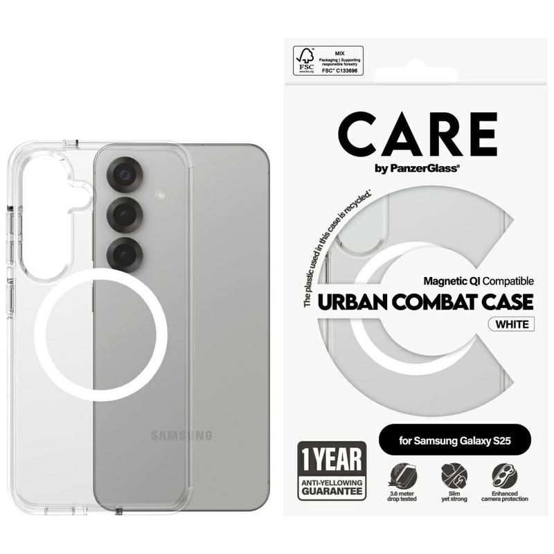 Samsung Galaxy S25 PanzerGlass Care Urban Combat Case - MagSafe Compatible - White / Transparent
