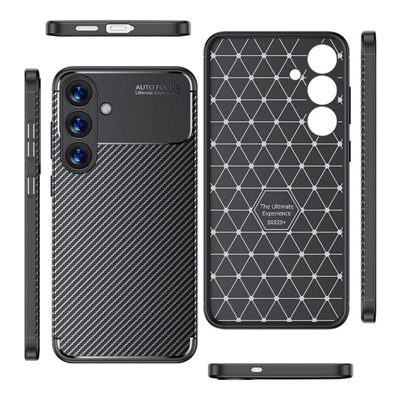 - Protect your Samsung Galaxy S25+ adequately with a unique carbon fiber texture TPU case