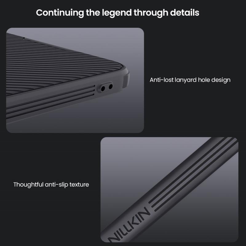 - This extraordinary Nillkin CamShield Prop hybrid case is made of plastic and TPU materials