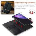 DG.Ming 2-in-1 wallet for Samsung Galaxy S25 Ultra is a versatile case that offers protection and adds functionality. The wallet consists of two separate cases that are held together by magnets: a soft, split leather folio with pockets and a snap on cover for Samsung Galaxy S25 Ultra. It can be transformed into a stand for easy media viewing, thanks to its magnetic clasps.