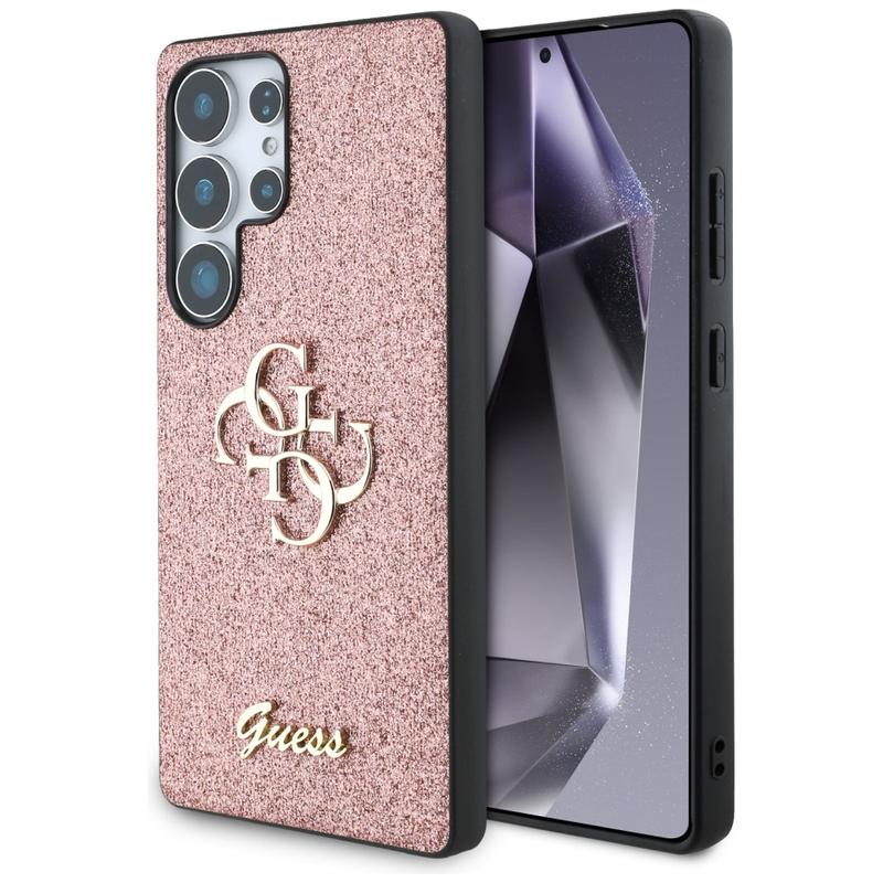 Step into a world of elegance and glam with the Guess Fixed Glitter 4G Metal Logo case, a premium choice that perfectly combines form and function to give your Samsung Galaxy S25 Ultra the treatment it deserves.