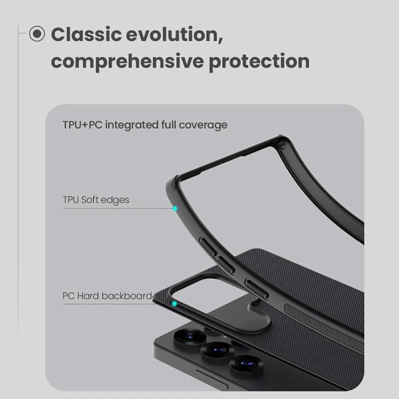 The Nillkin designed the new, more powerful Pro version of the Super Frosted Shield case for your precious Samsung Galaxy S25 Ultra. Ultimate drop protection, thanks to dual-layer design - PC back with TPU frame.