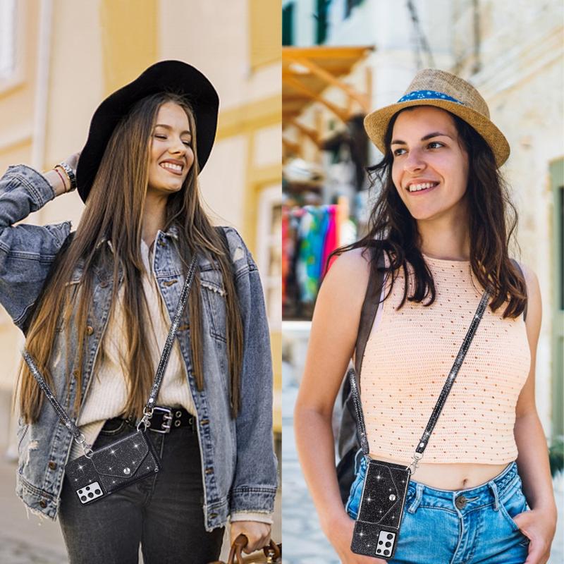 The premium quality case from the Stardust series is the right choice for protecting your Samsung Galaxy S25 Ultra from any potential damage. It has a card holder on the back with a snap button which is great to store your essential cards and keep them safe. A shiny glitter surface adds a touch of glamour to your phone. In addition, the cover comes with a 150cm shoulder strap, allowing you to carry your Samsung Galaxy S25 Ultra with you wherever you go.