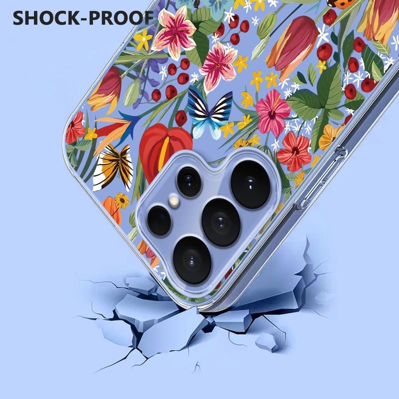 Transform your Samsung Galaxy S26 Ultra into a handheld piece of art. The Floral edition surrounds your phone with a dreamy wash of lavender blooms and delicate butterflies printed in high-definition inks that resist fading. Crafted from flexible, shock-absorbing TPU, the case hugs every curve of your device while raised lips guard the screen and camera lenses from daily knocks. A matte, anti-smudge coating keeps the design crisp and your phone fingerprint-free, all without blocking Qi wireless charging.