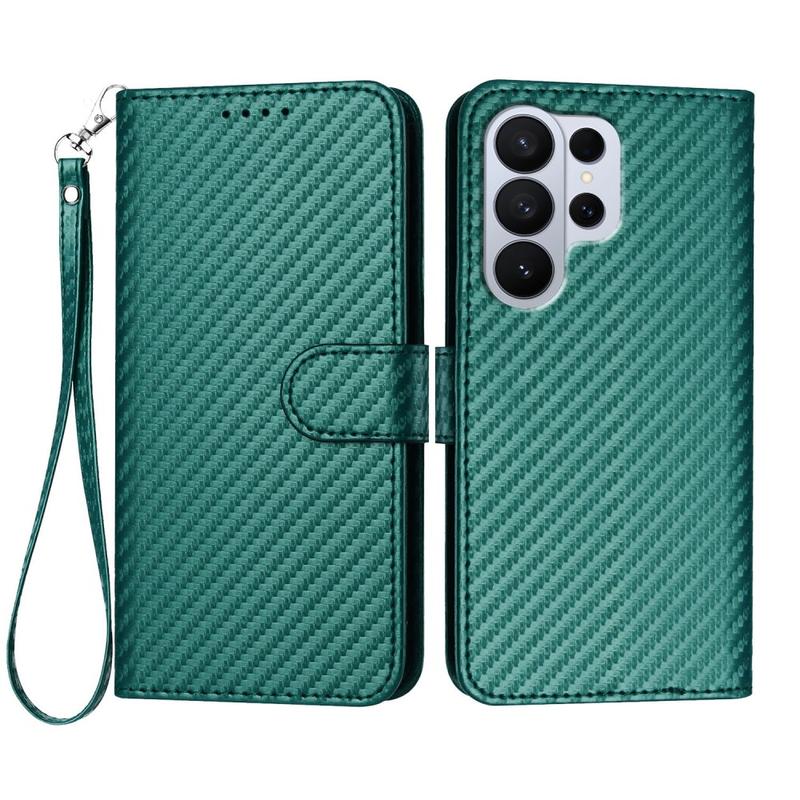 Premium Wallet Case with Strap for Samsung Galaxy S26 Ultra - Carbon Fiber Texture