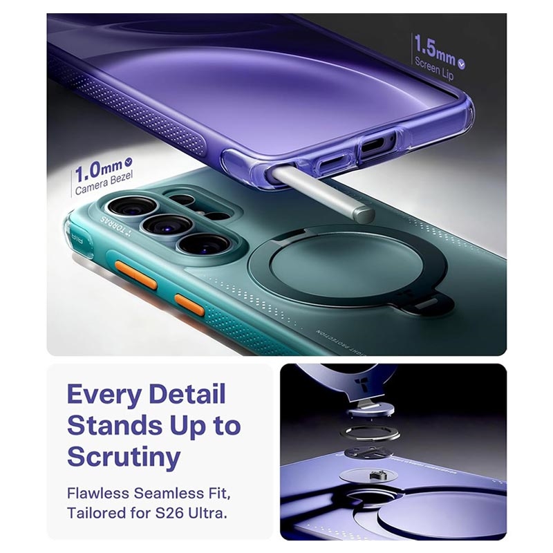 The Torras Ostand Q3 Air MagSafe Case for Samsung Galaxy S26 Ultra combines modern aesthetics with advanced protection. Crafted from high-quality TPU and PC materials, it provides a slim, stylish profile while offering a secure and comfortable grip.