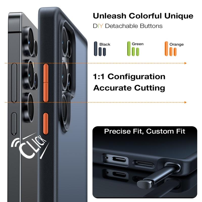 • Torras Skin-Touch Case with Interchangeable Color Buttons for Samsung Galaxy S26 Ultra – Matte PC and TPU Protective Cover