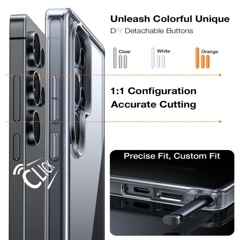 The case includes three interchangeable button colour sets, allowing you to personalise your Samsung Galaxy S26 Ultra’s look. Easily swap buttons to match your style, outfit or mood and create a unique, customised appearance.