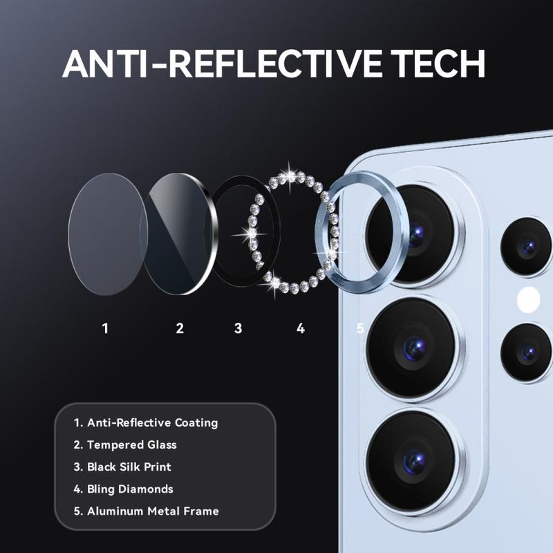 Add sparkle and protection to your Samsung Galaxy S26 Ultra with the NORTHJO Camera Lens Protector. Designed with shimmering rhinestones and precision-cut tempered glass, it keeps your camera lens safe from scratches, dust, and impact while adding a touch of elegance and luxury.