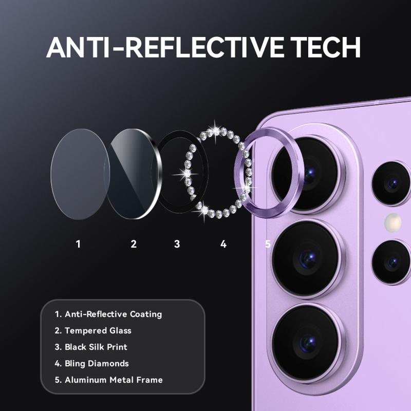 Add sparkle and protection to your Samsung Galaxy S26 Ultra with the NORTHJO Camera Lens Protector. Designed with shimmering rhinestones and precision-cut tempered glass, it keeps your camera lens safe from scratches, dust, and impact while adding a touch of elegance and luxury.