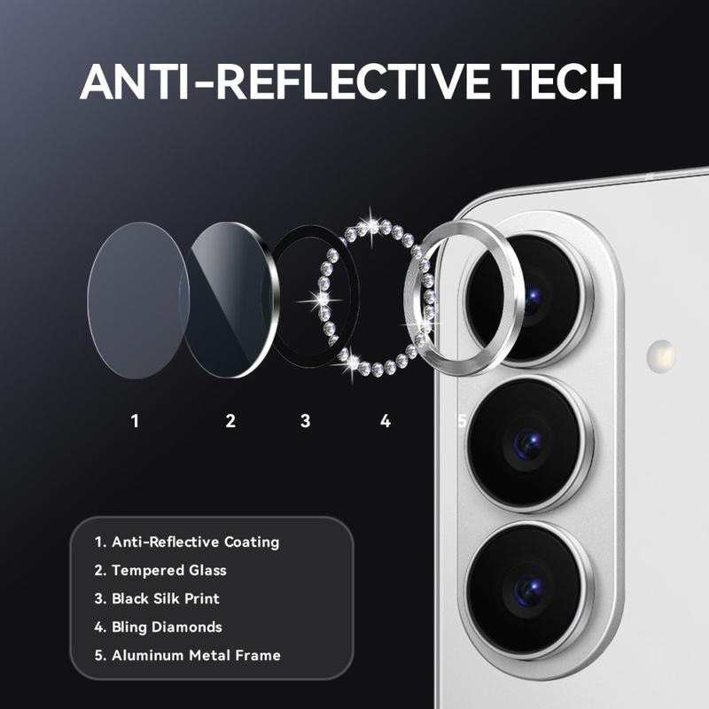 Add sparkle and protection to your Samsung Galaxy S26+ with the NORTHJO Camera Lens Protector. Designed with shimmering rhinestones and precision-cut tempered glass, it keeps your camera lens safe from scratches, dust, and impact while adding a touch of elegance and luxury.