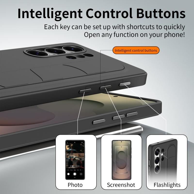 Smart Hybrid Case with Standing Grip for Samsung Galaxy S26 Ultra - NFC Customizable Shortcut Keys, Wristband Kickstand & Alloy Camera Protection