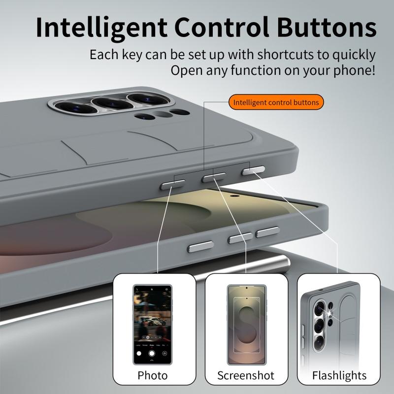 • Smart Hybrid Case with Standing Grip for Samsung Galaxy S26 Ultra - NFC Customizable Shortcut Keys, Wristband Kickstand & Alloy Camera Protection