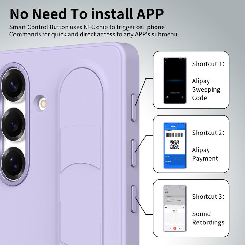 The amazing Smart Hybrid Case with Standing Grip is designed to give your Samsung Galaxy S26, Galaxy S26 Pro more than just protection. It combines customizable NFC shortcut buttons, a secure grip strap, and a versatile kickstand into one durable, stylish cover – making it the ultimate everyday companion.