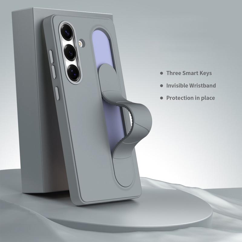 Smart Hybrid Case with Standing Grip for Samsung Galaxy S26 - NFC Customizable Shortcut Keys, Wristband Kickstand & Alloy Camera Protection
