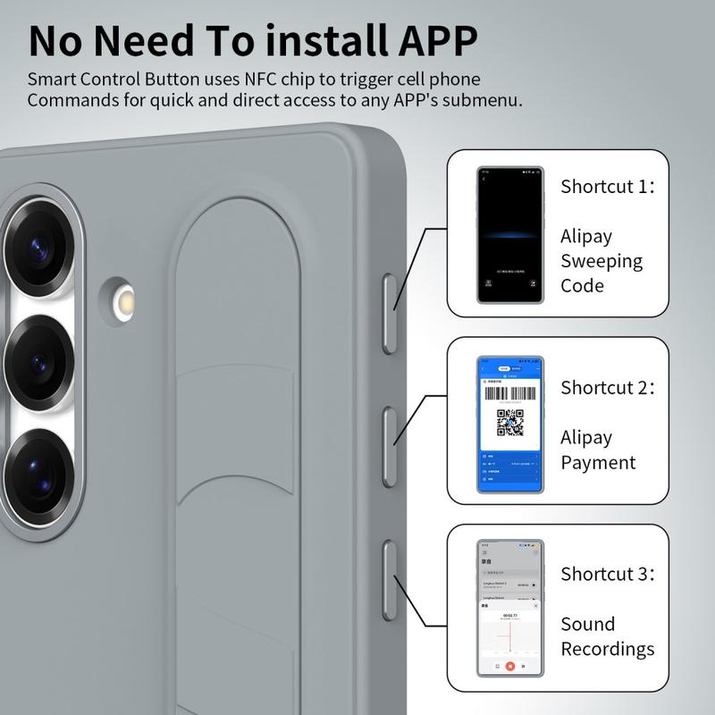 Equipped with three intelligent NFC-enabled buttons, this smart hybrid case lets you set up quick access to apps like Camera, Flashlight, or Screenshot with a single press. No charging, no extra apps – just simple, instant functionality.