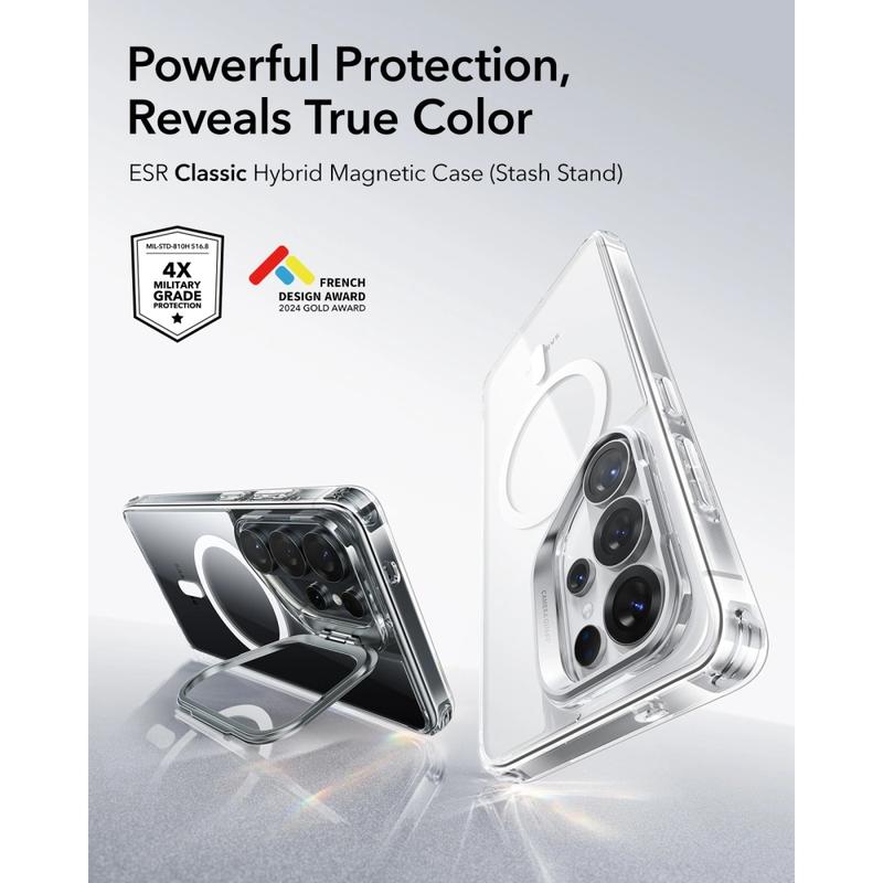 The ESR Classic Hybrid Kickstand Case for Samsung Galaxy S26 Ultra combines slim elegance with powerful protection. Its transparent hard back showcases your Samsung Galaxy S26 Ultra’s original design while reinforced TPU corners provide added durability against drops and impacts.