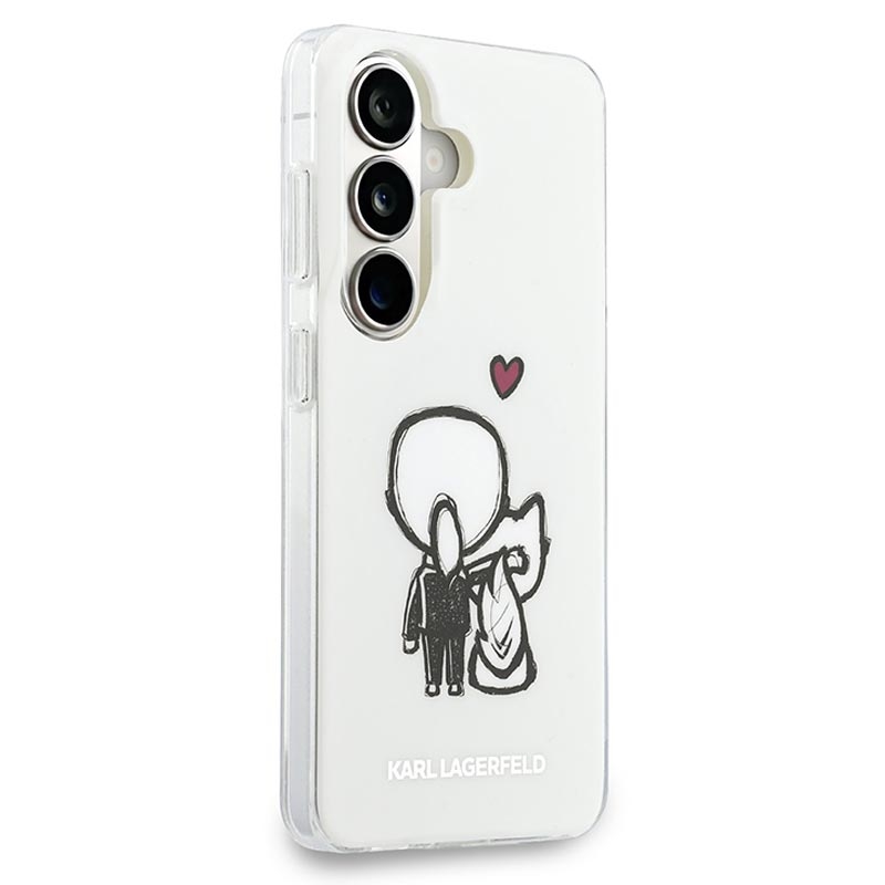 Upgrade your everyday look with the Karl Lagerfeld IML Karl and Choupette Back Logo magnetic case for Samsung Galaxy S26. Designed to combine premium style with practical protection, this hybrid cover features the iconic Karl and Choupette silhouette logo on the back for a modern, fashion-forward finish. With a rigid PC back and flexible TPU sides, it protects your phone from daily wear while staying slim, comfortable, and easy to grip.