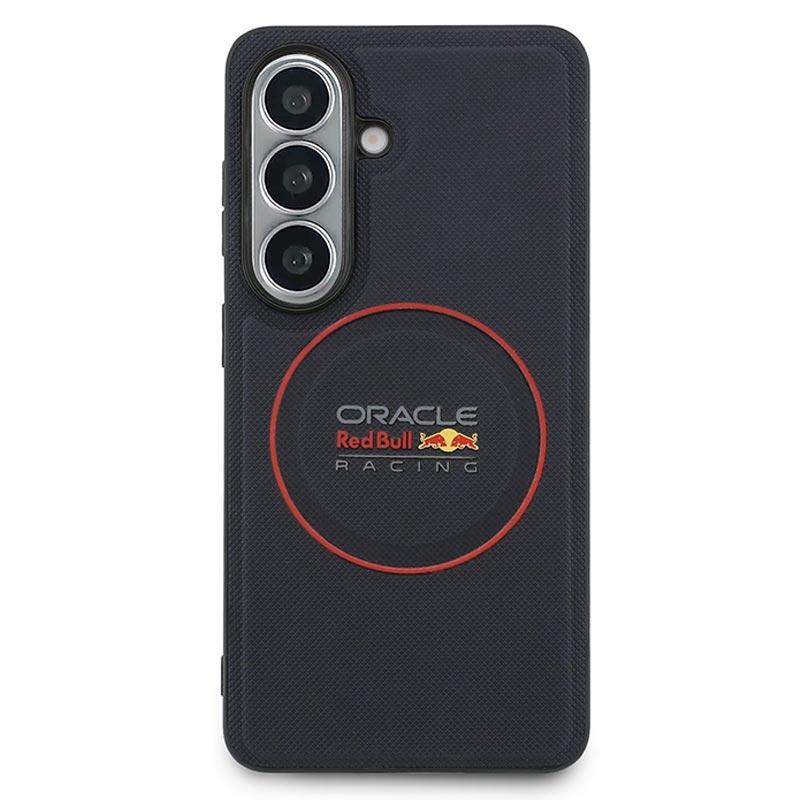 Bring racing energy to your everyday carry with the Oracle Red Bull Racing PU Meshed Red Ring magnetic case for Samsung Galaxy S26+. Inspired by the speed-focused world of motorsport, this premium case combines a protective PC and TPU structure with an polyurethane surface for a bold look and comfortable grip. The distinctive red ring and meshed styling deliver standout design, while the integrated magnetic function makes it easy to use with magnetic holders, for example in the car.
