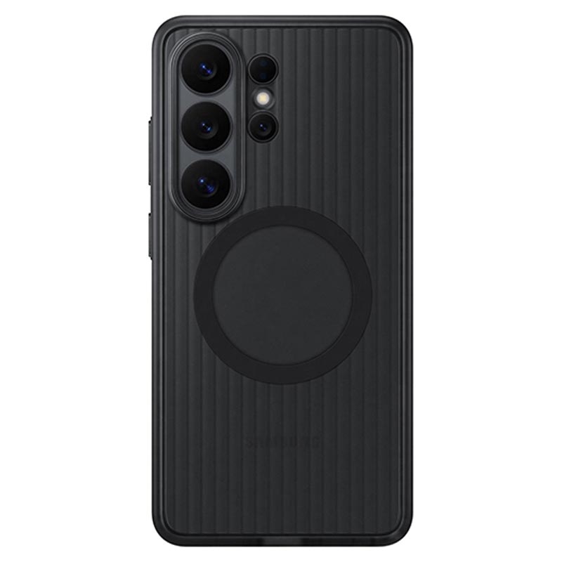 Built for everyday knocks and tougher moments, the Original Samsung Galaxy S26 Ultra Rugged Magnet Case delivers strong protection without giving up comfort. Its rugged construction is designed to absorb shock from drops and resist scratches and impact, with raised edges that help protect both the screen and camera when you set your phone down. Grooved sides improve grip, while a padded inner layer adds extra cushioning and a more comfortable feel in hand.