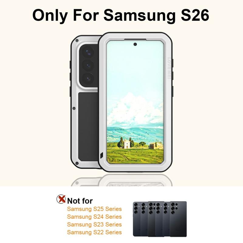 • Love Mei Powerful Hybrid Case for Samsung Galaxy S26 - Heavy-Duty Metal & Silicone Shockproof Protective Cover
