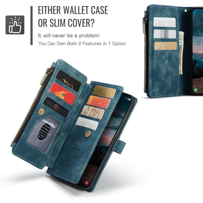 The Caseme C30 multifunctional wallet case for Samsung Galaxy S26 brings exceptional all-around protection and an exclusive, refined design. This elegant case is made of premium polyurethane, reinforced with a shock-resistant TPU inner cover that snuggles your Samsung Galaxy S26 perfectly. Meanwhile, the Caseme C30 wallet case is enhanced with numerous card slots, one large money compartment inside, and one outside zipper pocket, all protected by a secure magnetic closure.
