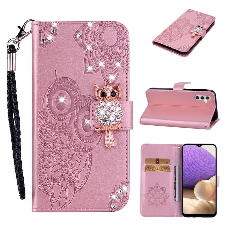 Samsung Galaxy S26 Owl Rhinestone Wallet Case - Rose Gold