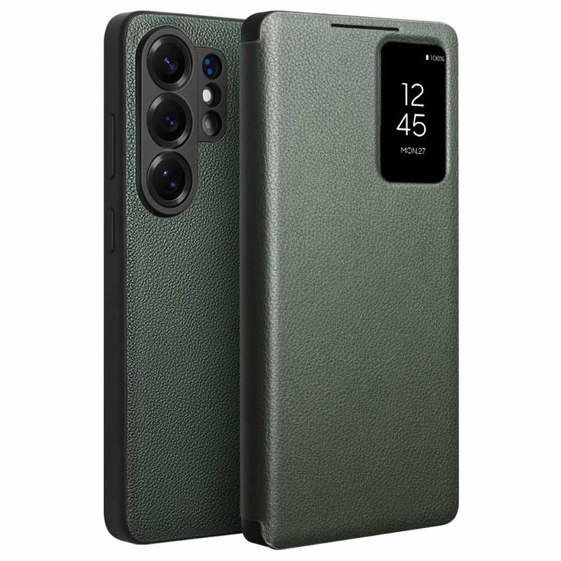 The luxurious Qialino Smart View flip case for Samsung Galaxy S26 Ultra is made of genuine cowhide leather for superior style and elegance. This slim, classy leather flip case supports the smart wake-up and sleep function of your Samsung Galaxy S26 Ultra, while the small view window on the front flip allows you to check the screen's information quickly. It perfectly matches the shape of your Samsung Galaxy S26 Ultra, preserving its full functionality.