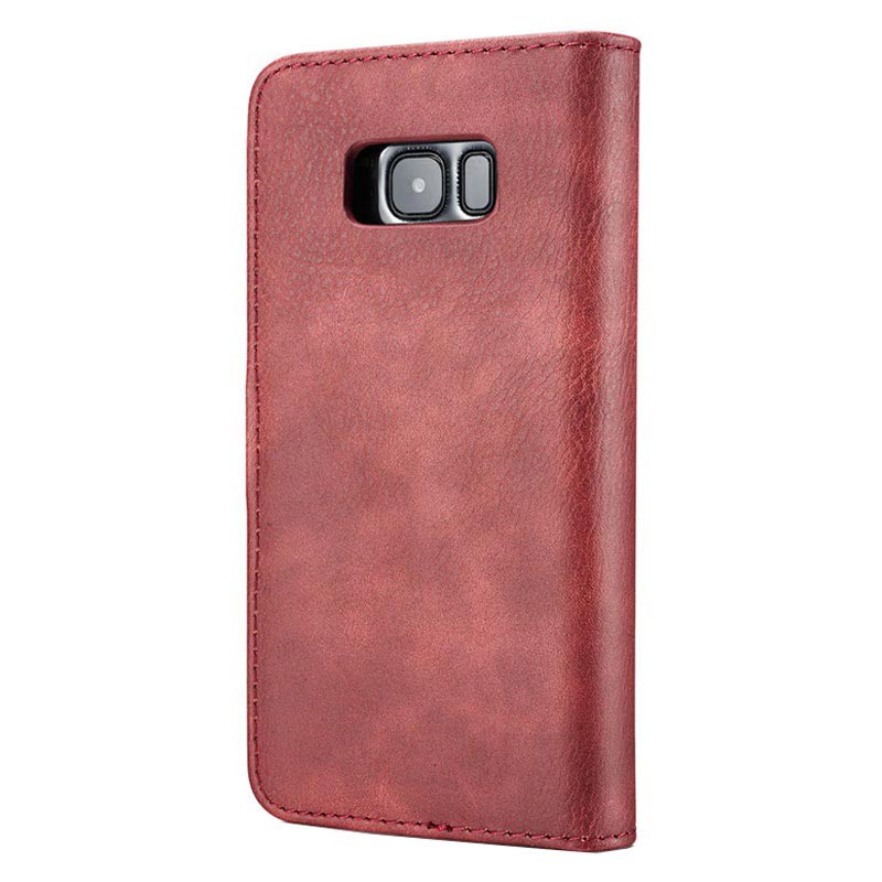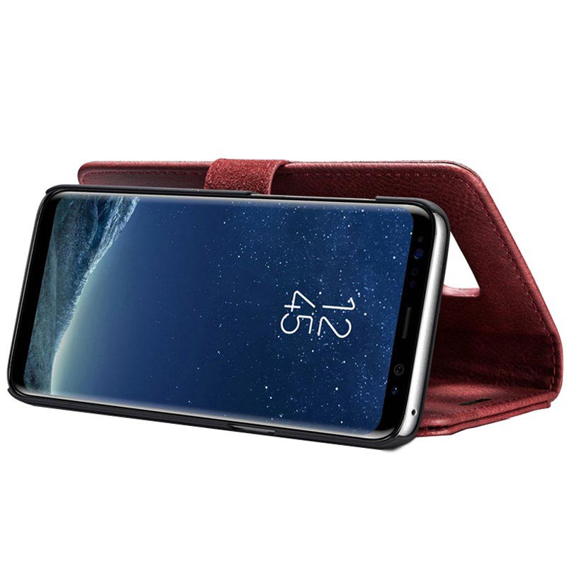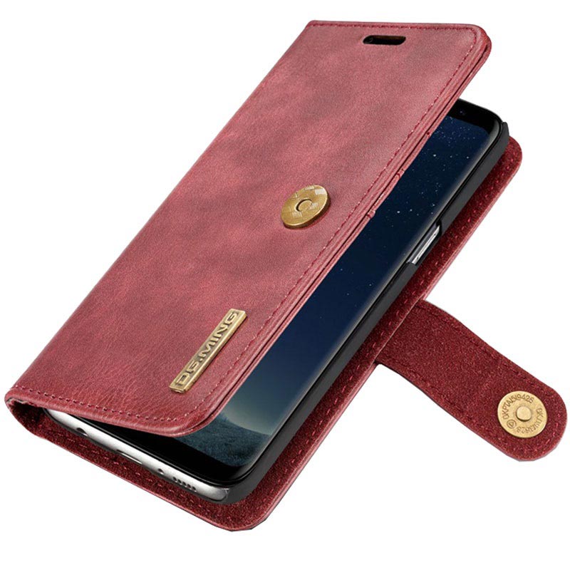 DG.Ming 2-in-1 leather wallet for Samsung Galaxy S8+ is a versatile case that offers protection and adds functionality. The wallet consists of two separate cases that are held together by magnets: a soft, split leather folio with pockets and a snap on cover for Galaxy S8. It can be transformed into a stand for easy media viewing, thanks to its magnetic clasps.