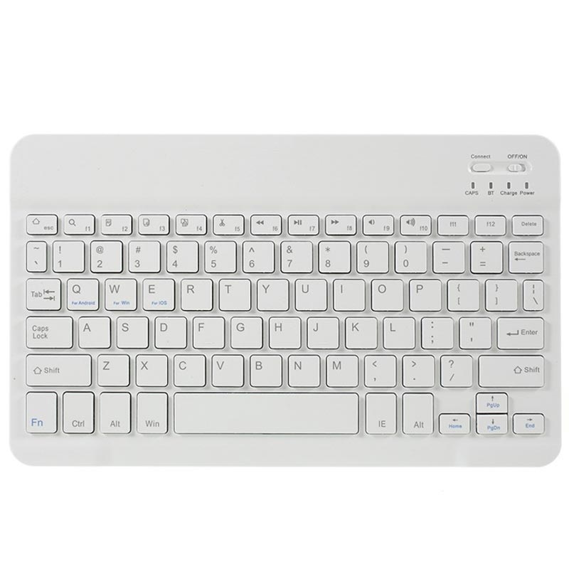 - The Bluetooth keyboard also has QWERTY layout and built-in rechargeable battery