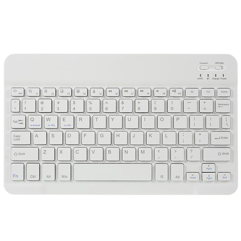 - The Bluetooth keyboard also has QWERTY layout and built-in rechargeable battery