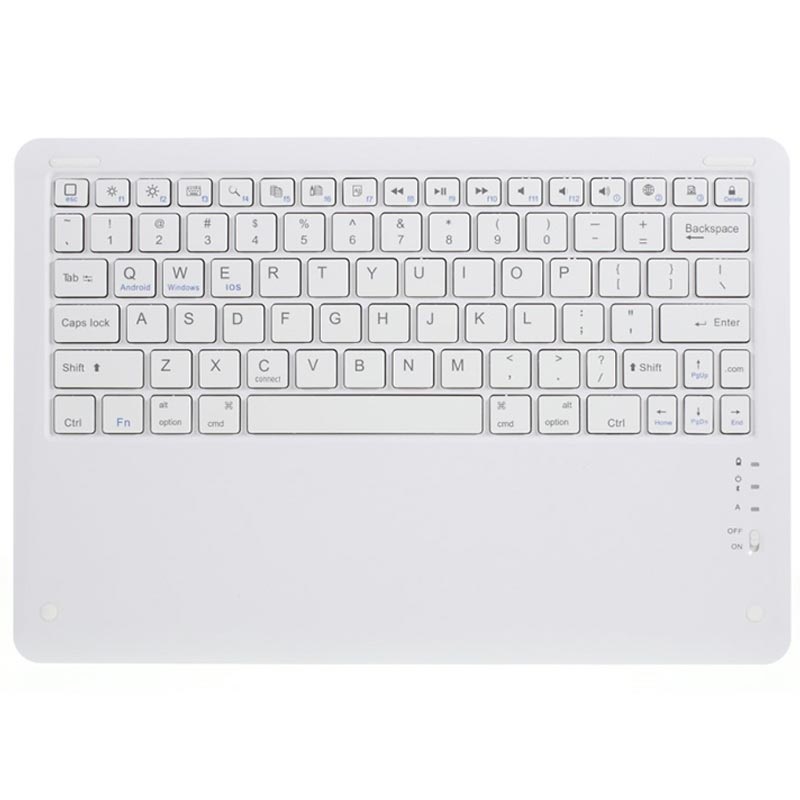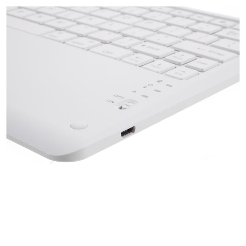 - The Bluetooth keyboard also has QWERTY layout and a built-in rechargeable battery