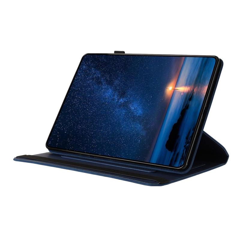 The 360° rotating mechanism uses a reinforced pivot hinge built into the back shell — allowing stable rotation without loosening over time, a design inspired by professional folio cases used in business-grade tablets.
