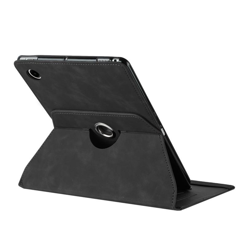 The 360° rotating mechanism uses a reinforced pivot hinge built into the back shell — allowing stable rotation without loosening over time, a design inspired by professional folio cases used in business-grade tablets.