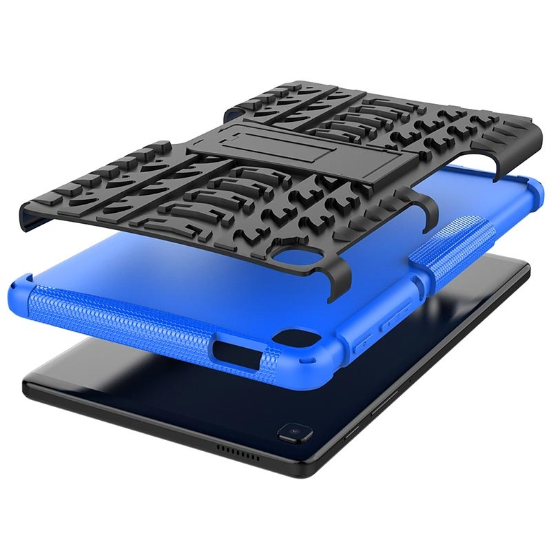 The hard outer layer makes your Samsung Galaxy Tab A7 Lite less susceptible to bending, while the shock-absorbing inner layer protects it from drops and impacts. Upon that, the built-in kickstand enables comfortable video watching on your Samsung Galaxy Tab A7 Lite.