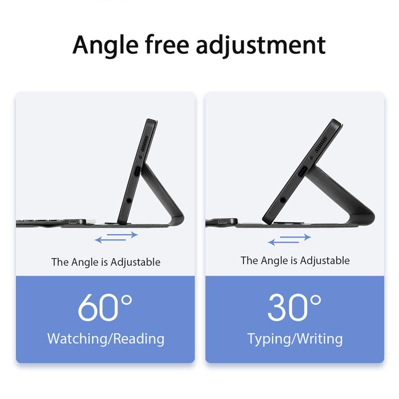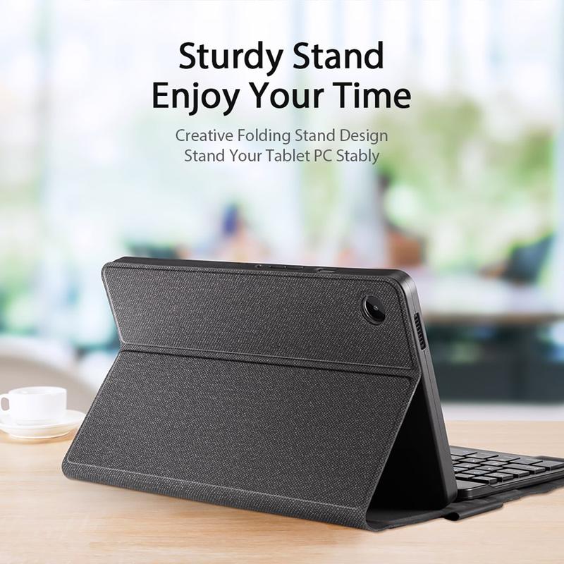 Slim and lightweight design allows you easy to carry this fantastic Dux Ducis Bluetooth keyboard case for Samsung Galaxy Tab A9 everywhere you. 2-in-1, Bluetooth keyboard, and a tablet case. The keyboard is attached with a dual-magnet, and it's very stable and won't move quickly. Enjoy in hands-free experience using a case as a supporting stand at a few angles.