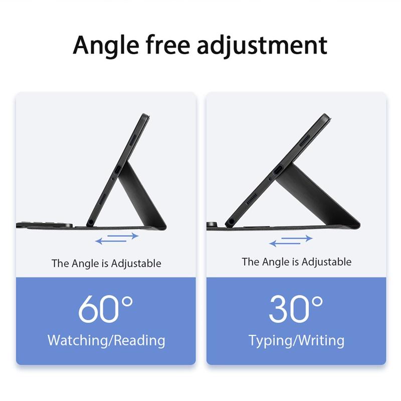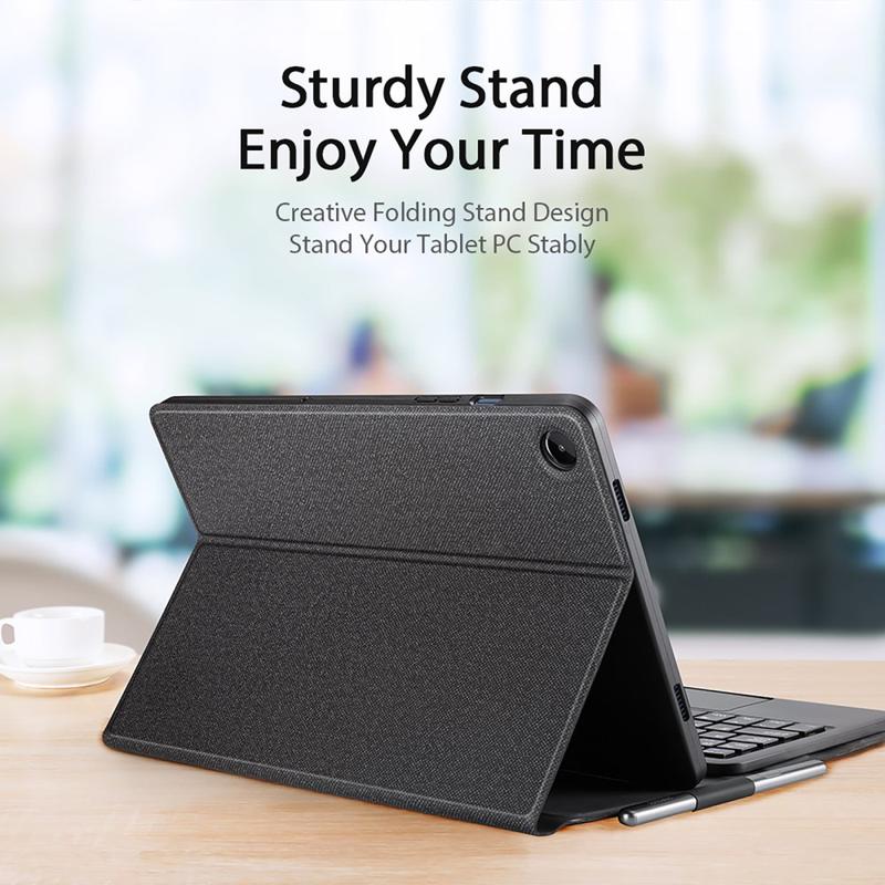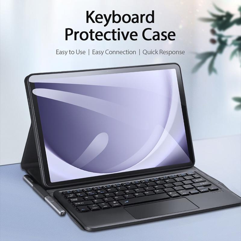 Slim and lightweight design allows you easy to carry this fantastic Dux Ducis Bluetooth keyboard case for Samsung Galaxy Tab A9+ everywhere you. 2-in-1, Bluetooth keyboard, and a tablet case. The keyboard is attached with a dual-magnet, and it's very stable and won't move quickly. Also, it has a touchpad with adjustable sensitivity and a long-lasting button. Enjoy in hands-free experience using a case as a supporting stand at a few angles.