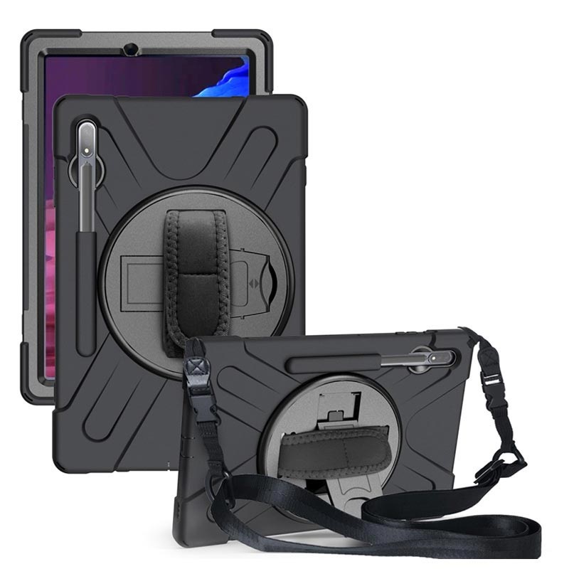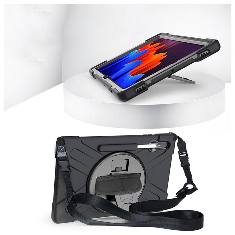 Heavy Duty 360-degree Rotating Case with Hand & Shoulder Strap for Samsung Galaxy Tab S7 Plus, Galaxy Tab S8 Plus