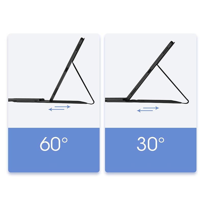 Slim and lightweight design allows you easy to carry this fantastic Dux Ducis Bluetooth keyboard case for Samsung Galaxy Tab S9 everywhere you. 2-in-1, Bluetooth keyboard, and a tablet case. The keyboard is attached with a dual-magnet, and it's very stable and won't move quickly. Also, it has a touchpad with adjustable sensitivity and a long-lasting button. Enjoy in hands-free experience using a case as a supporting stand at a few angles.