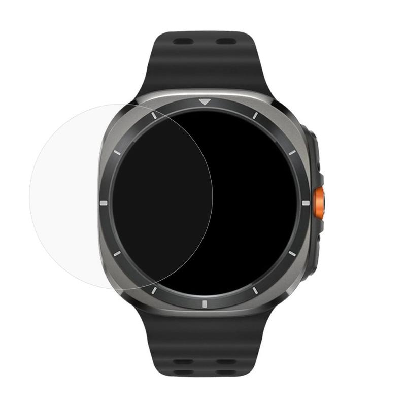 - A clear tempered glass screen protector for Samsung Galaxy Watch Ultra