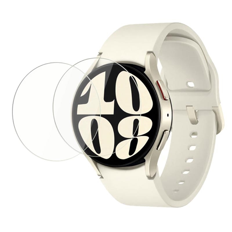 - A clear tempered glass screen protector for Samsung Galaxy Watch6 Classic