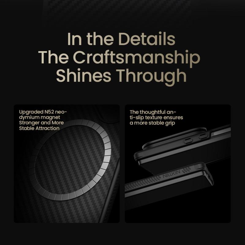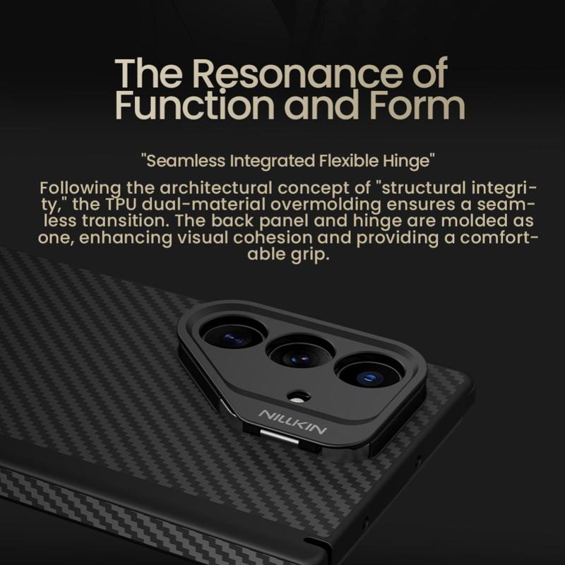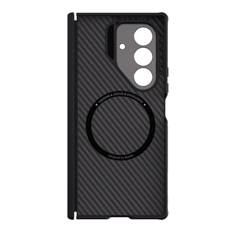 Give your Samsung Galaxy Z Fold7 the same protection trusted in aerospace gear. The Nillkin CarboProp blends “black-gold” aramid fiber with shock-absorbing TPU to create a feather-light shell that withstands everyday drops while keeping the phone’s fold-smooth silhouette. An integrated metal camera frame doubles as a hands-free kickstand, and built-in magnets snap perfectly to MagSafe chargers and accessories—no extra plates needed.